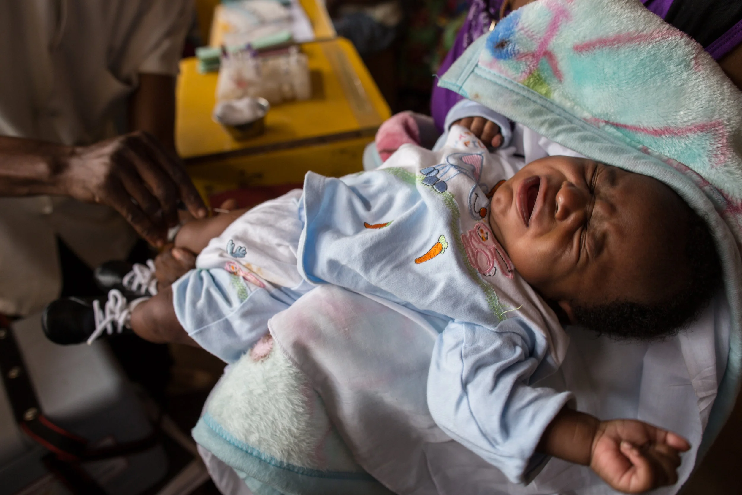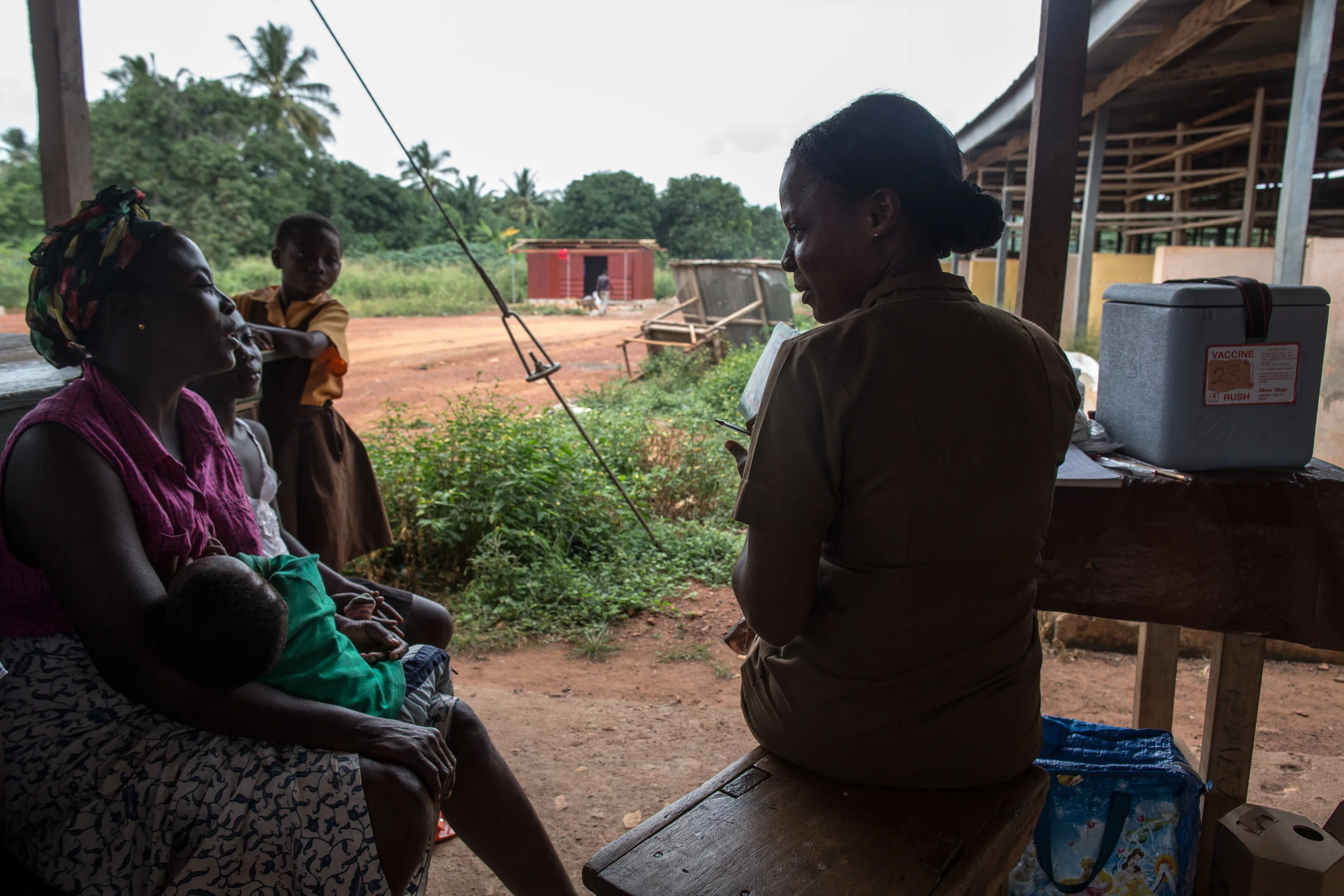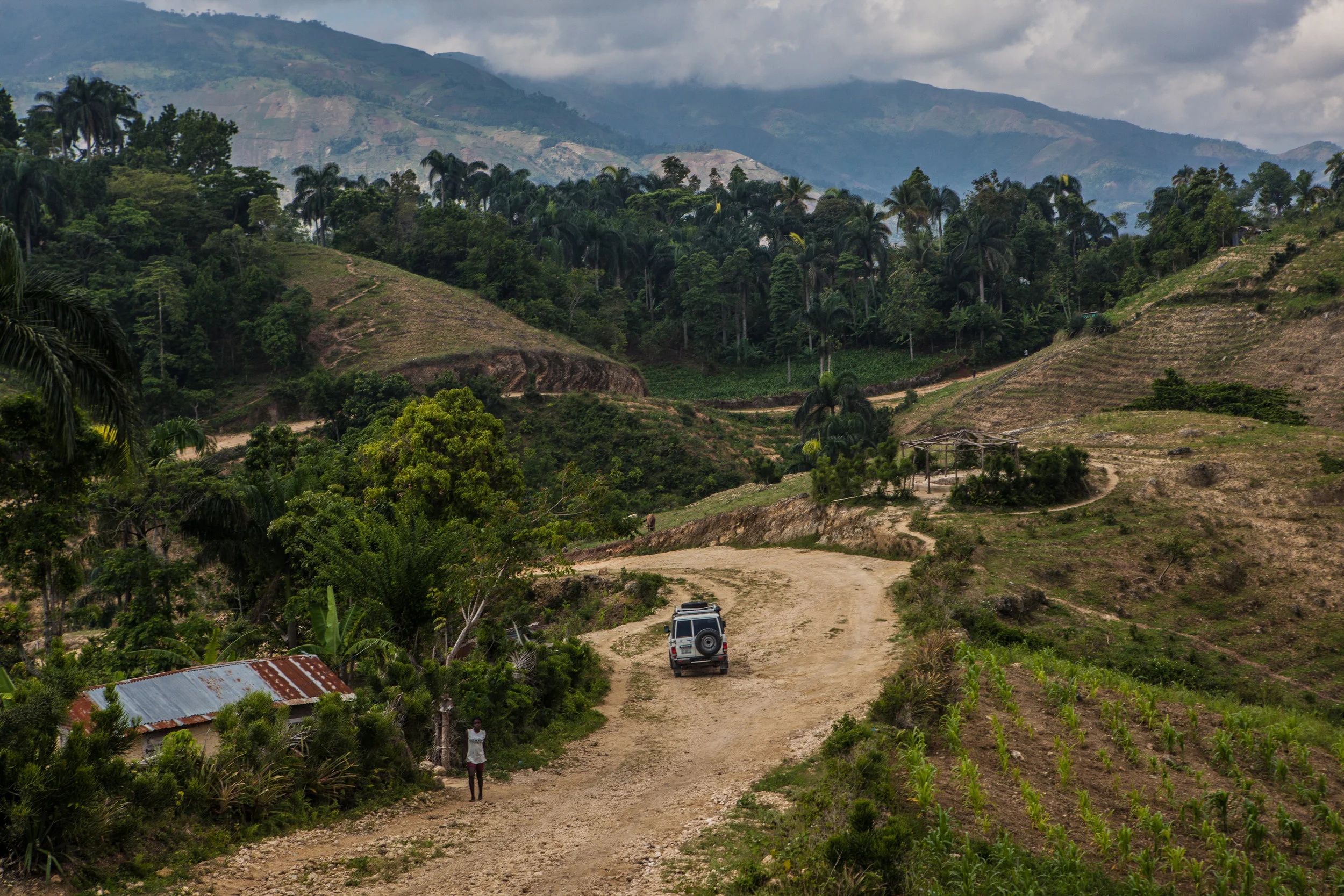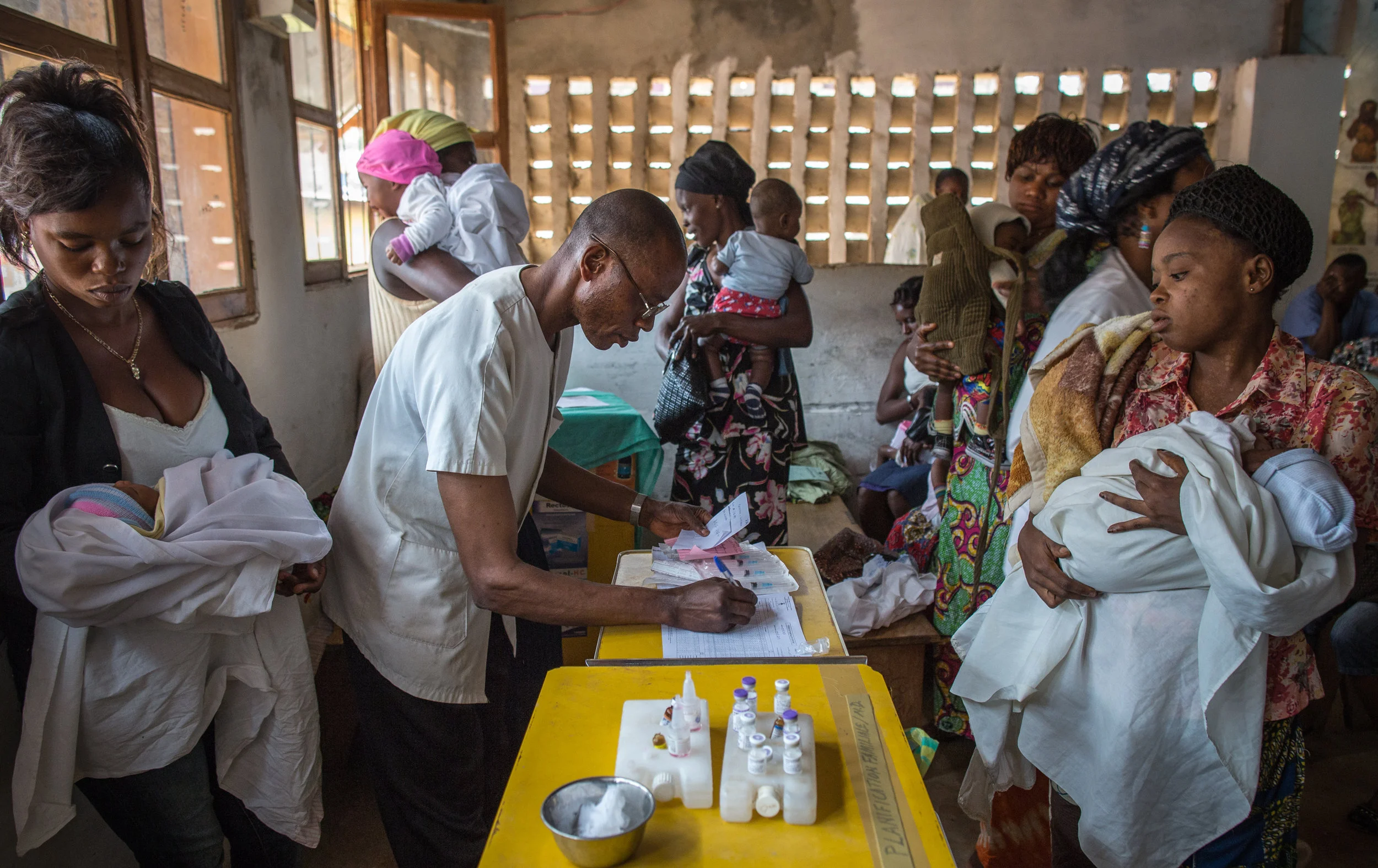Setting out with a team from the Democratic Republic of Congo's Ministry of Health, I traveled to the city of Matadi, 300km from Kinshasa. The ever declining quality of the roads as we drove further from the capital meant the journey took eight hours. Bouncing over dusty, rough tracks, we stopped along the way at rural health centers, where solar-powered refrigerators are used to safeguard the vaccines which must be stored at a constant temperature. In these remote areas, one fridge stores enough vaccines to serve thousands of people. The next morning I met Jina Kiaku Mianfipa, a vaccinator in Kizulu Sanzi. Mr. Mianfipa would travel 50 kilometers on foot and by bicycle to deliver a cooler packed with vaccines to the village of Kinze Muété. I took pictures as I followed him over rutted dirt trails, at times too bumpy and steep to ride his bicycle, but he pressed on, pushing his bike and cooler past villagers laden with baskets and babies. He waved at children and neighbors, who smiled and laughed as I tried to keep up, running alongside Mr. Mianfipa trying to capture the spirit of his work with my camera – the remote landscape, the difficulty of his journey, and the people his exertions would help.